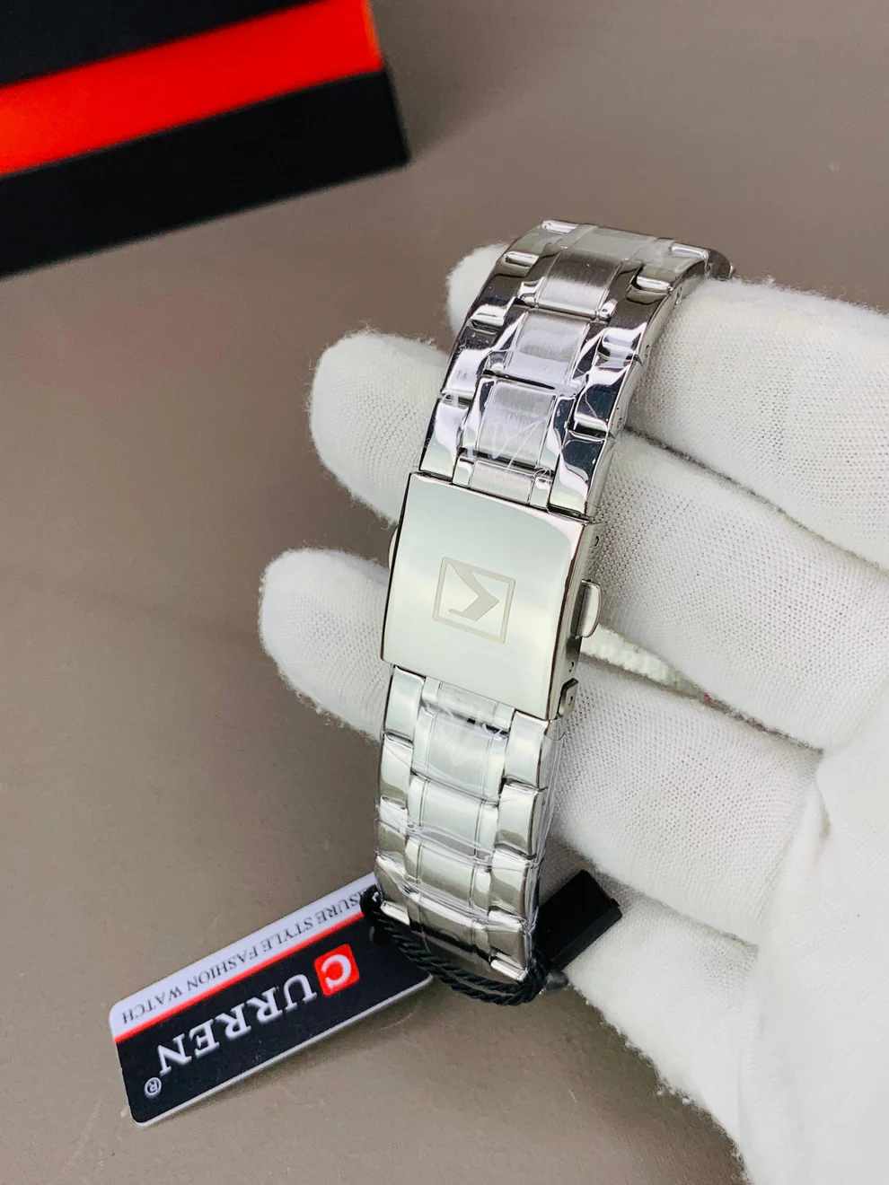 ساعة رجالية Curren 8466 براصلي فضي خلفية بيضاءبلعلبة و الضمان