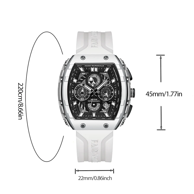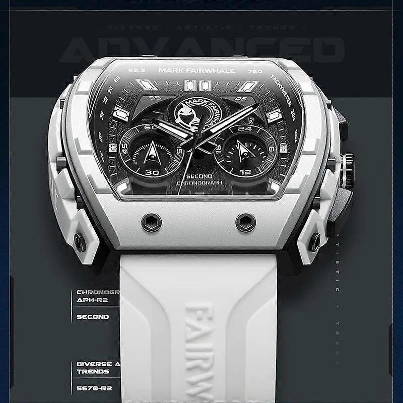 ساعة رجالية Fairwhale 5670 براصلي سيليكون ابيض بخلفية سوداءبلعلبة و الضمان