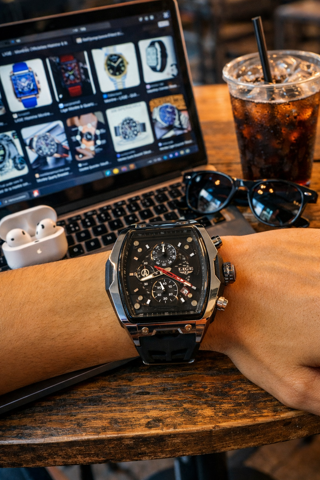 ساعة رجالية LIGE براصلي سيليكون اسود بلكاملساعة أصلية