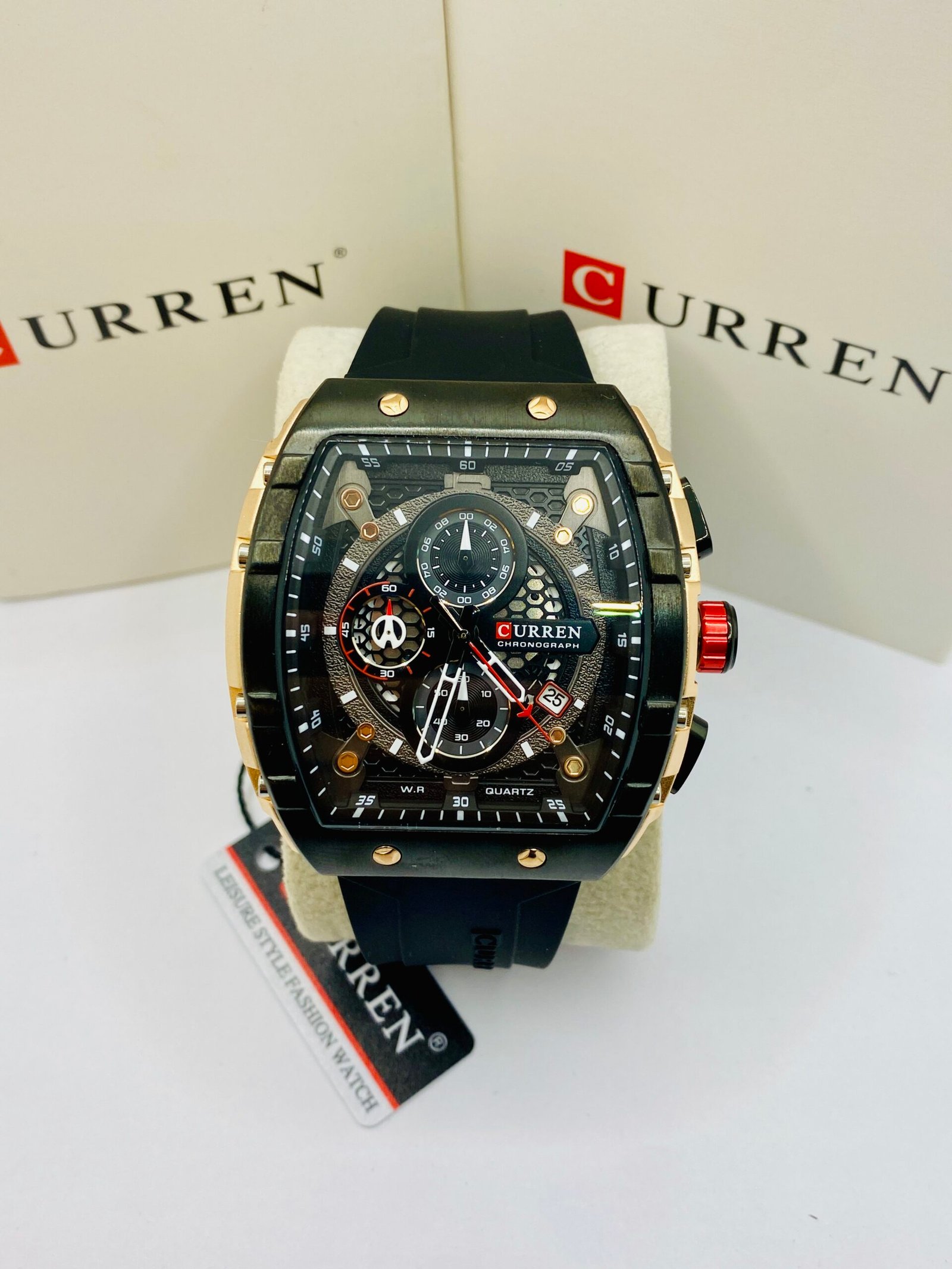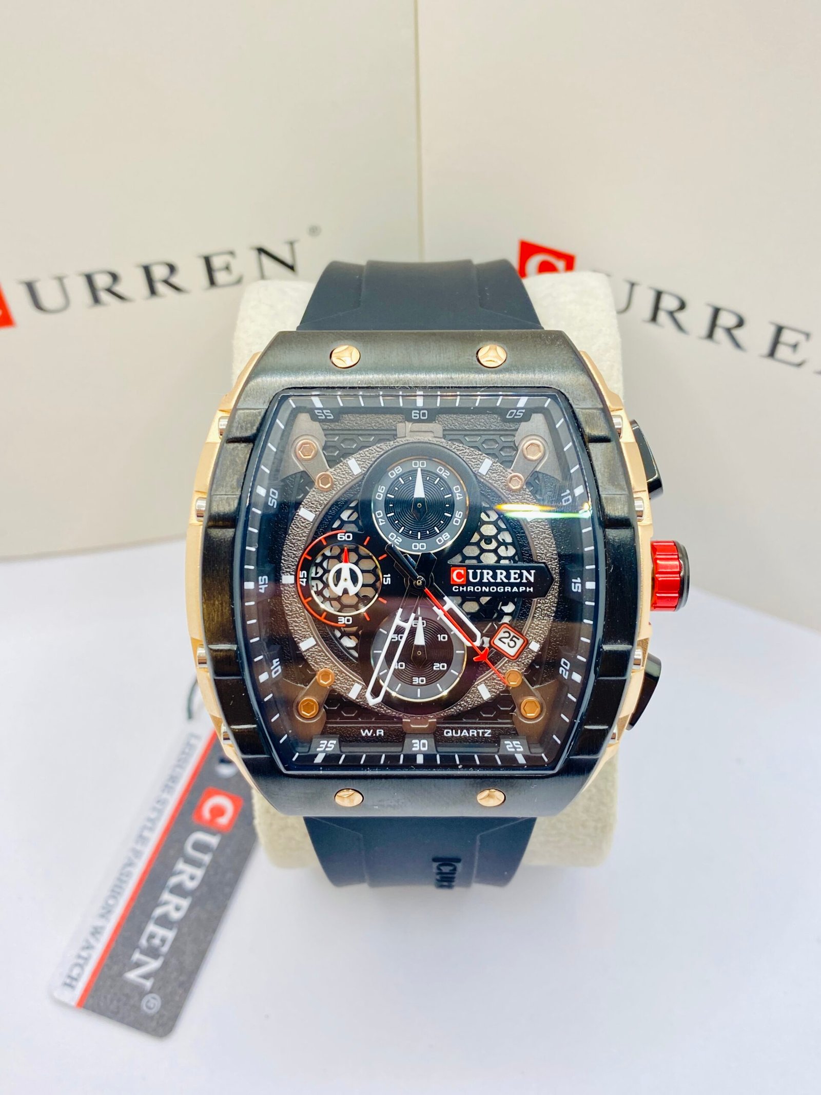 ساعة رجالية Curren 8442 براصلي سيليكون سوداء بلكاملساعة أصلية